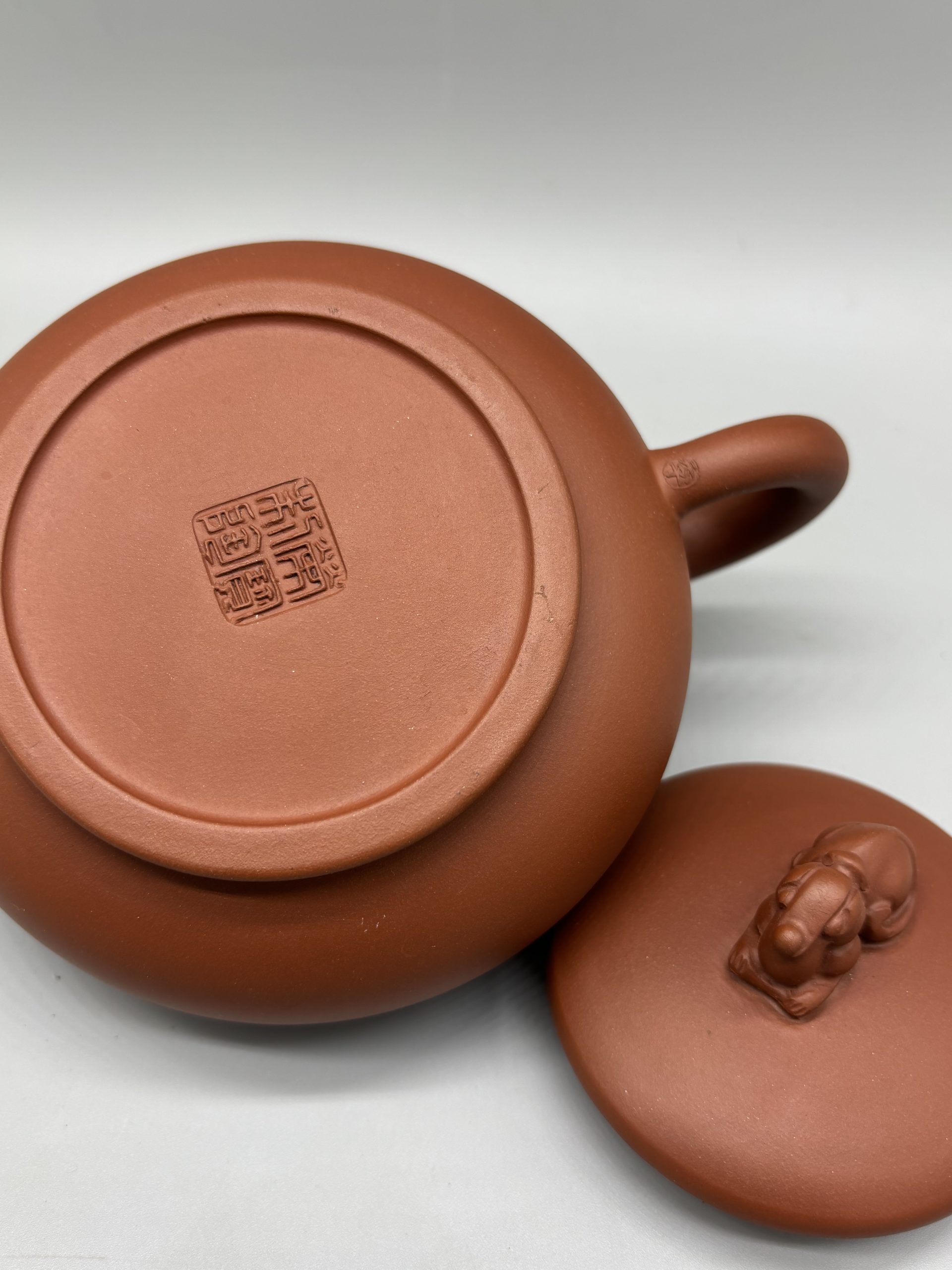 80年代 宜興名家壺 紅泥 瑞獸壺飾 400cc